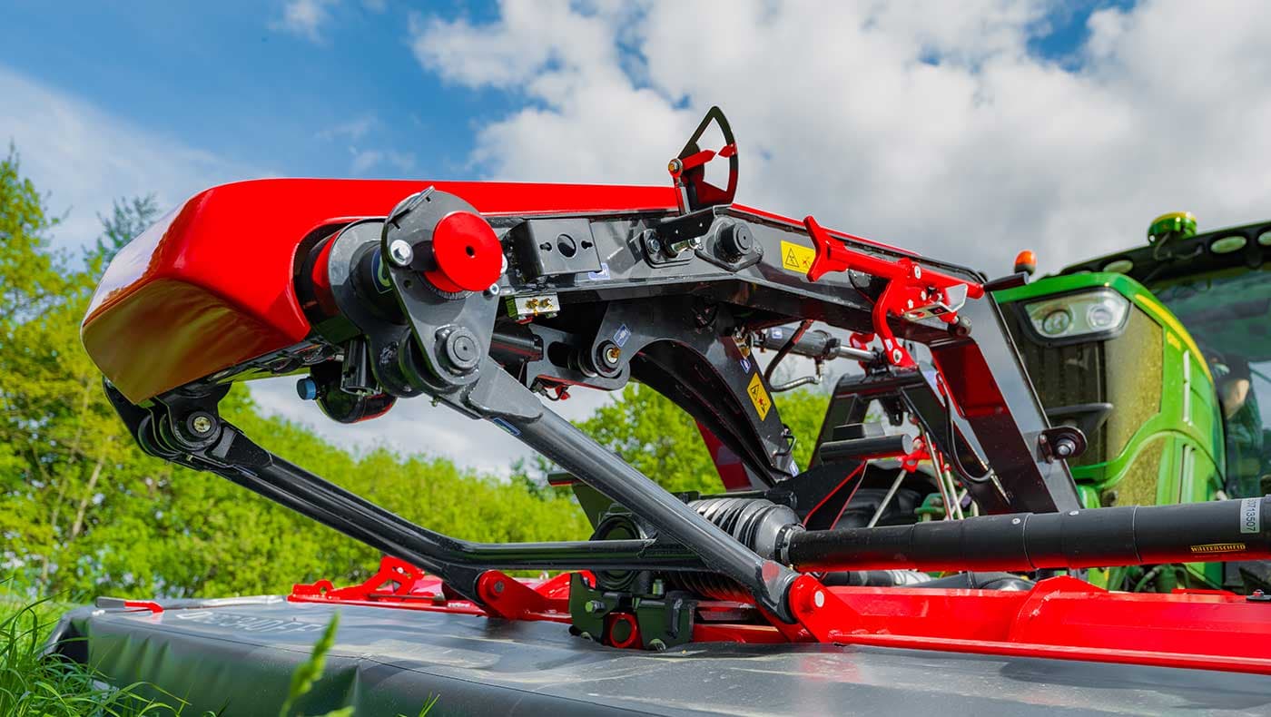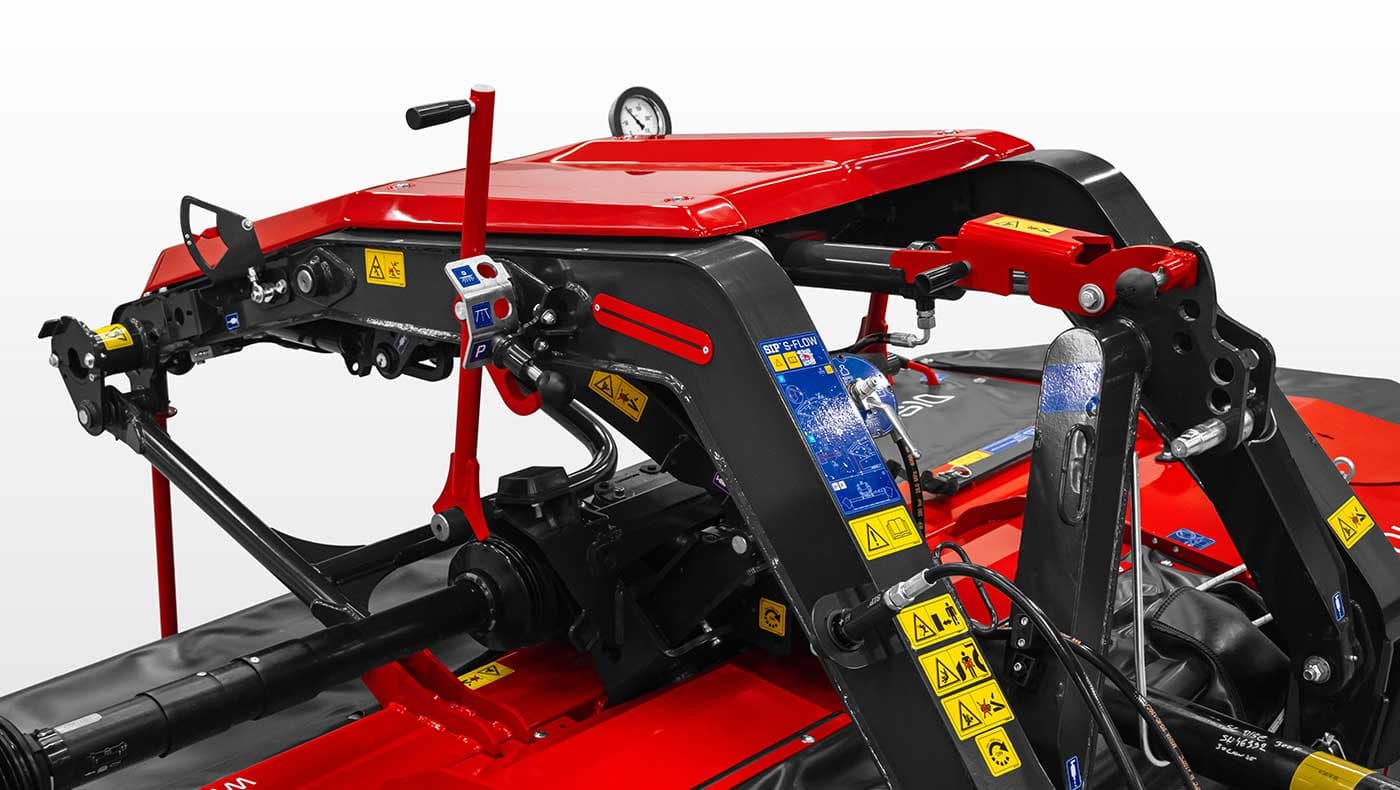 S-FLOW-koblingen med sitt hydro-pneumatiske dempesystem gjør slåmaskinen svært responsiv for endringer i underlaget. Opp- og nedbevegelsen til slåmaskinen er dermed i området −6° til +14°, og sidebevegelsen til slåmaskinen er i området 28°.