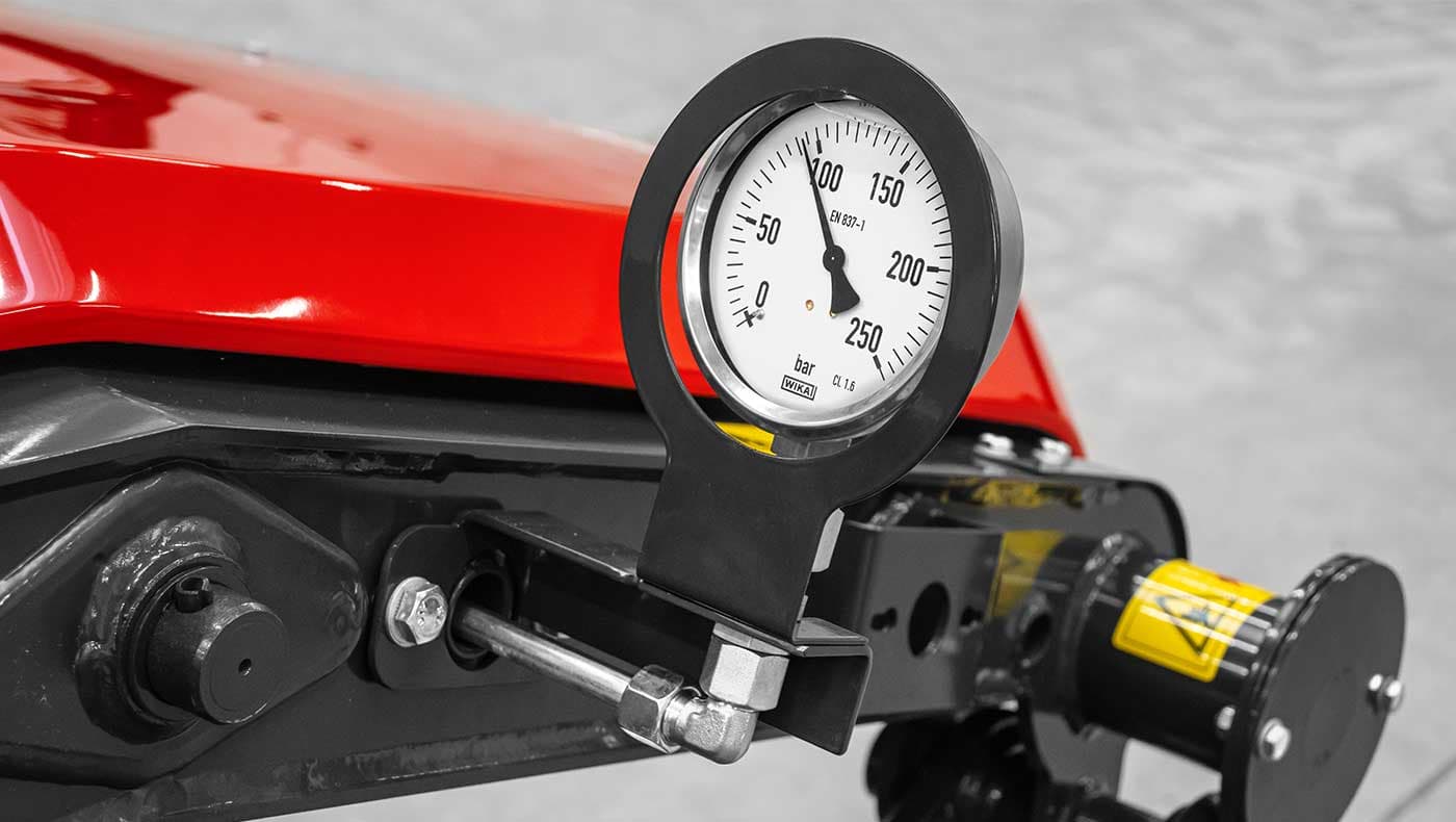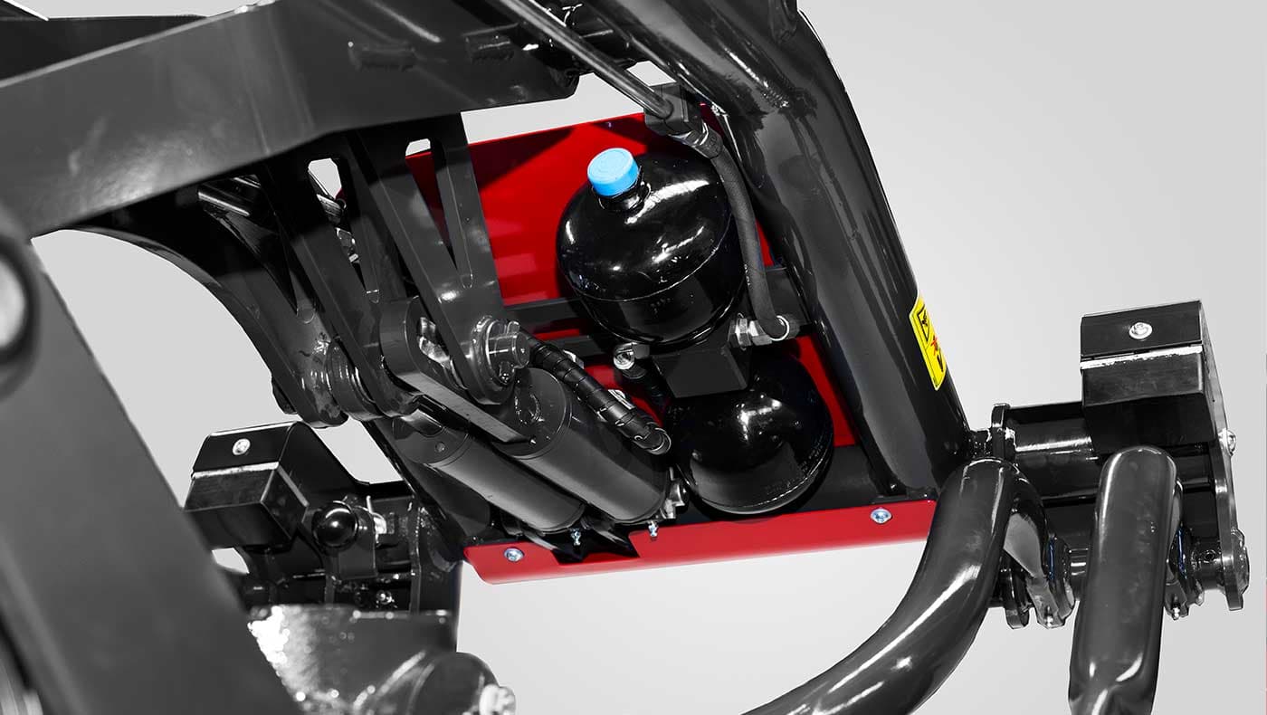 Den hydro-pneumatiske vektavlastninga sikrer at bjelken går med et jevnt marktrykk, hindrer kjøreskader på grasmarka og reduserer faren for at jordrester blandes inn i grasskåren. Vektavlastninga justeres enkelt ved bruk at ett av traktorens spoleventiler. Et manometer viser systemtrykket til en hver tid.